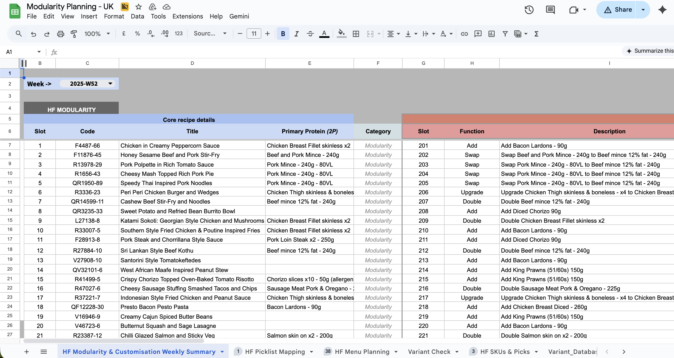The biggest problem was that recipe variants were treated as completely separate recipes. There was no real connection between a parent / base recipe, its variants (e.g. protein swaps) and their operational versions.